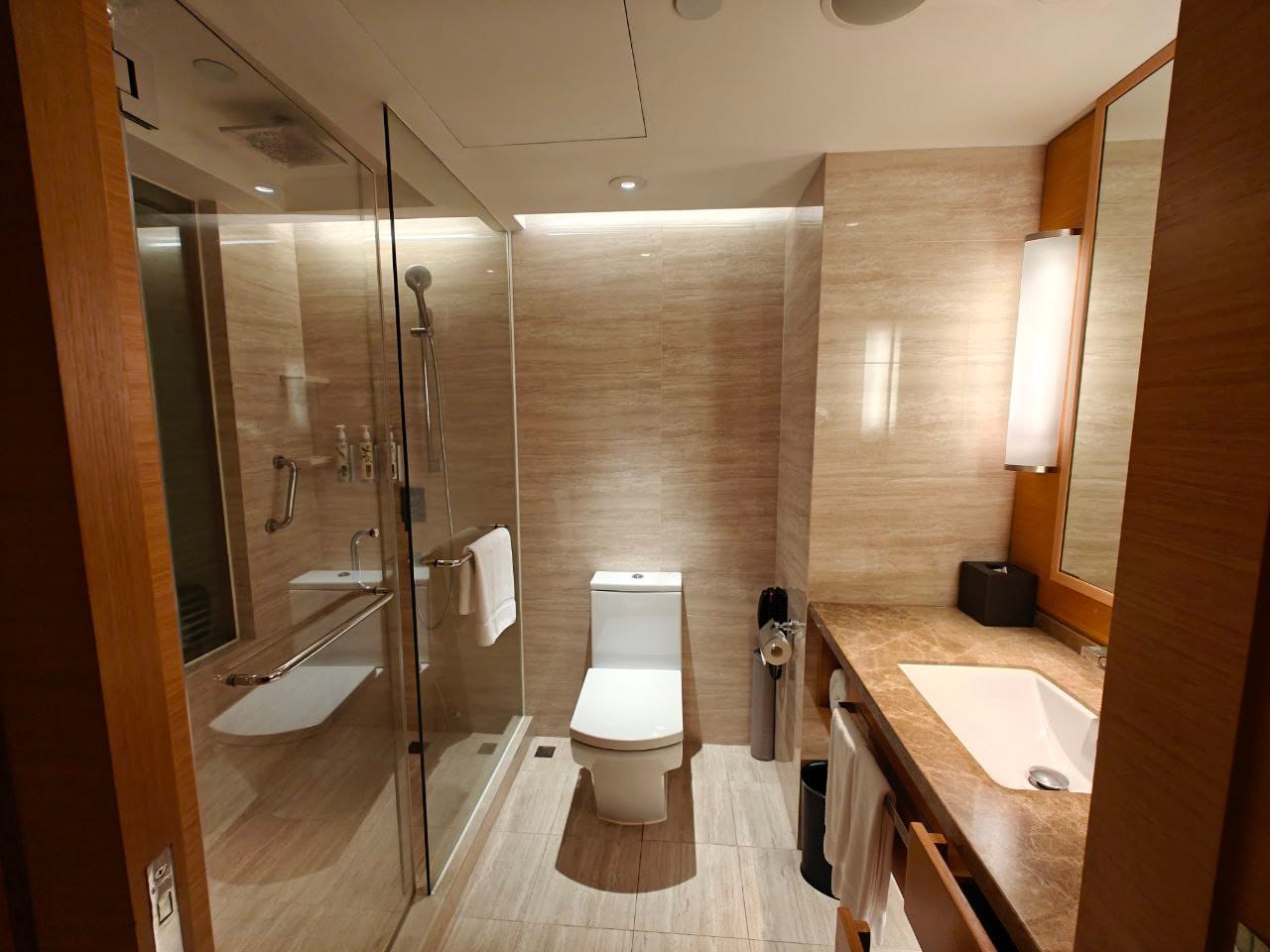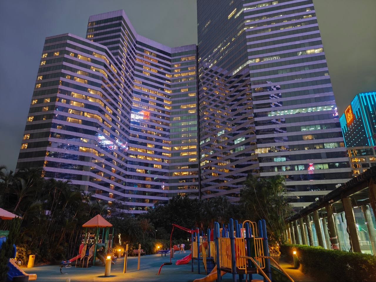 The lobby and facilities are all consistent with what you will expect from a branded hotel, considering that this is a Marriott-managed property. Being in the Convention and Exhibition Centre area, the compound is shared with another hotel, Grand Hyatt Hong Kong. Also notably, there is a large playground beside a garden, tennis court and a swimming pool which looks to be shared with another connected residence called Convention Plaza Apartments.