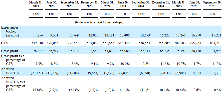 In their current expansion phase, volume growth is still essential so it is reasonable to think that they will be focusing a lot more initiatives on both acquiring partners to increase the supply of experiences available as well as demand creation investments to attract users. As of September 2025, the platform consists of around 310,000 offerings with more than 10 million annual transacting users.