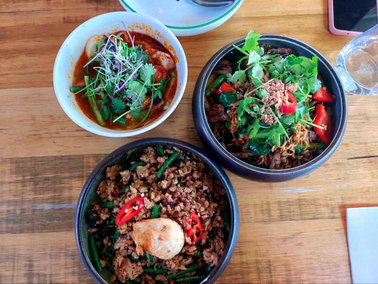 The menu was quite comprehensive with many items you’ll typically find in a thai restaurant. It did seem that a couple of the staff are Thai, giving it an added touch of authenticity. The tom yum seafood soup was impressive due to the depth in its flavour. We found that the rest of the stir-fried items, though comforting, steered towards the salty side.