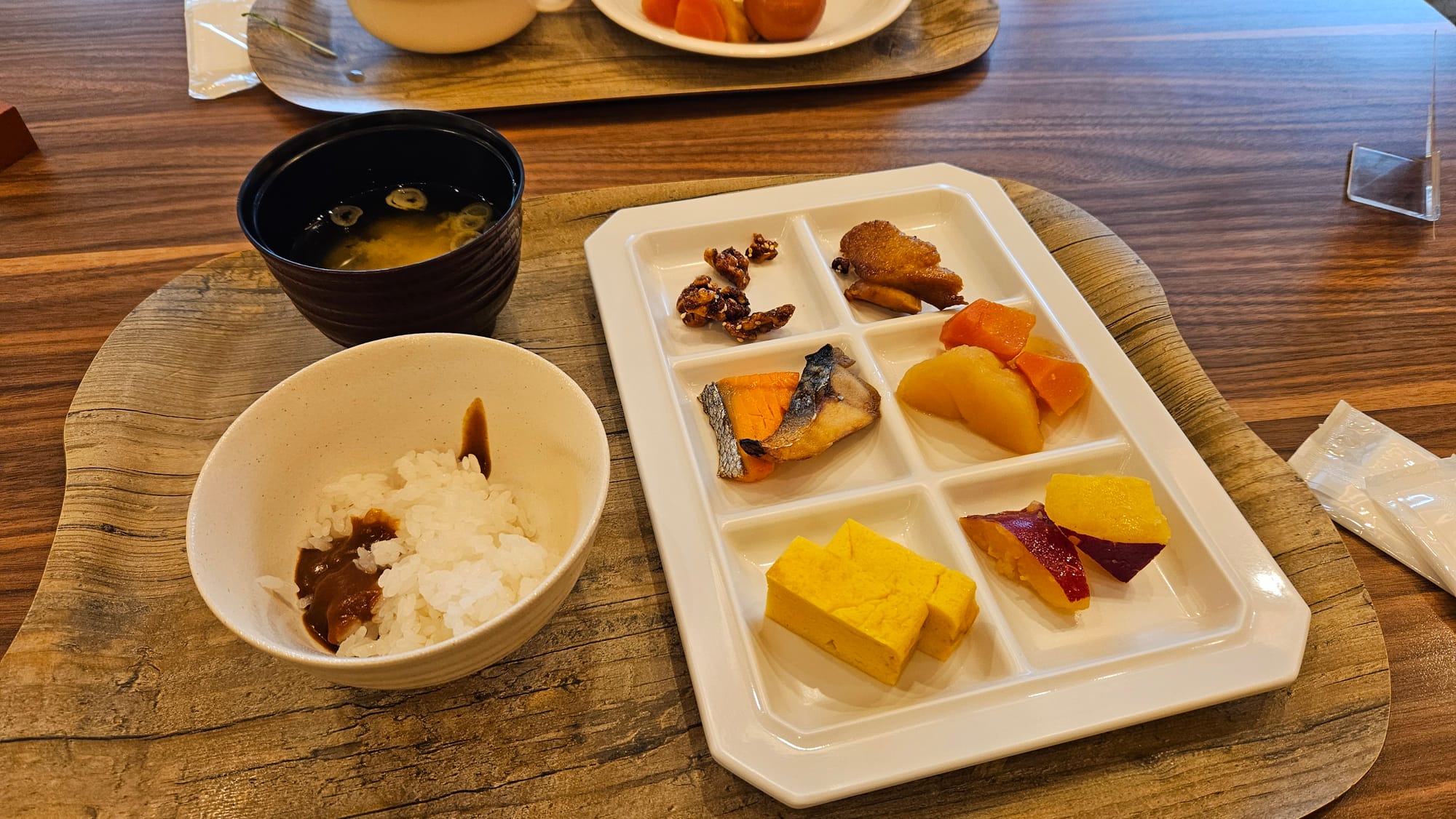 The next morning, we arrived promptly at the restaurant for breakfast. We were shown a pictorial menu indicating that we could select from a western or Japanese option. Breakfast was conducted in a semi-buffet fashion where items like bread, milk, rice and miso soup were free flow.
