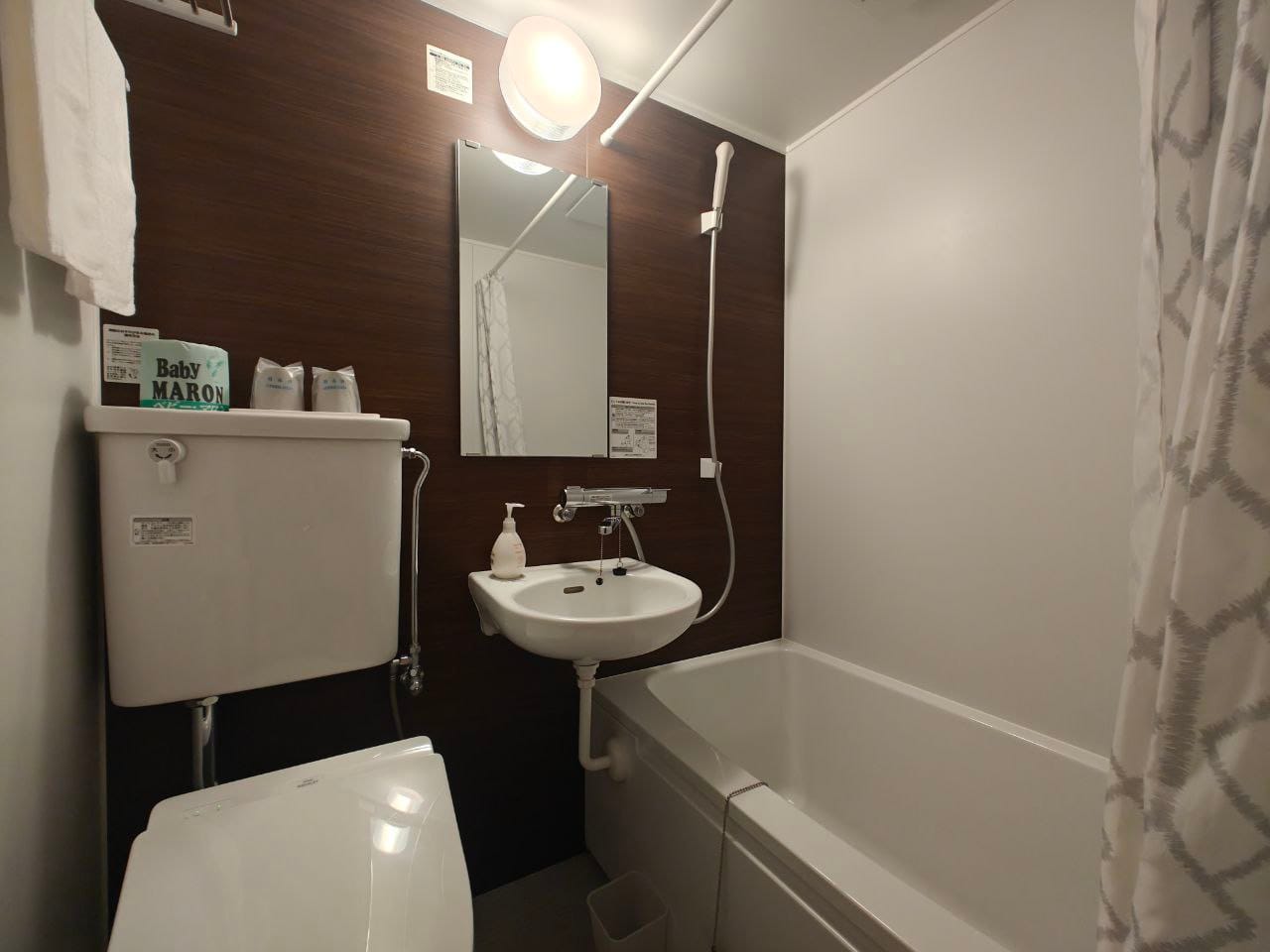 We got a room facing the woods, equipped with its own bathroom and living area. On the same floor, there is a small area dedicated to a vending machine selling drinks and a small but functional microwave. We found it very useful for heating up our convenience store purchases from the day.